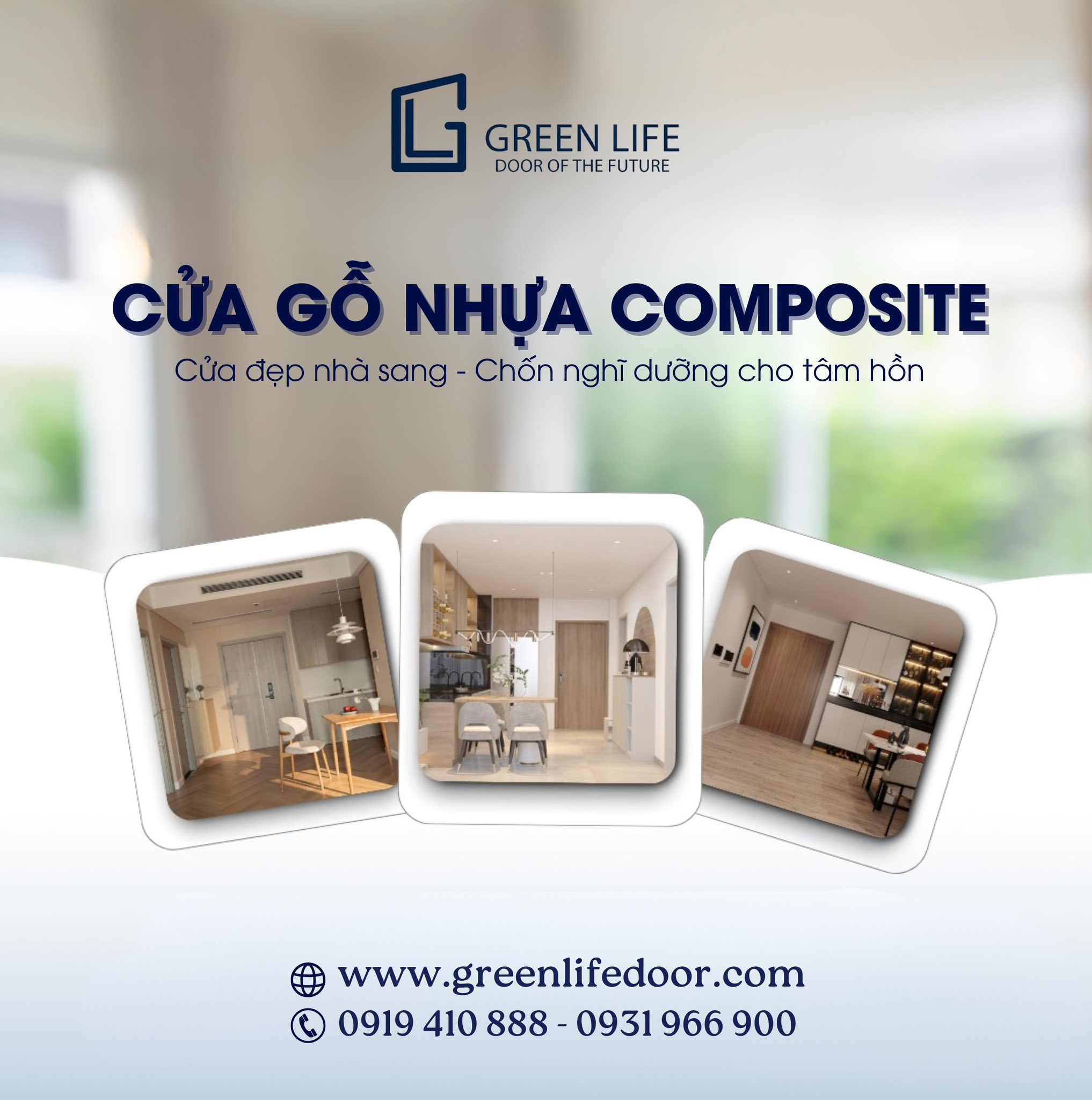 Với thiết kế hiện đại, vật liệu bền bỉ và giá trị thẩm mỹ vượt thời gian, cửa gỗ nhựa composite GREEN LIFE xứng đáng là sự lựa chọn hoàn hảo cho mọi ngôi nhà Việt. Không chỉ đơn thuần là một cánh cửa, GREEN LIFE còn mang đến giải pháp sống tinh tế – nơi mỗi lần mở ra là đón ánh sáng, mỗi lần khép lại là giữ trọn bình yên.