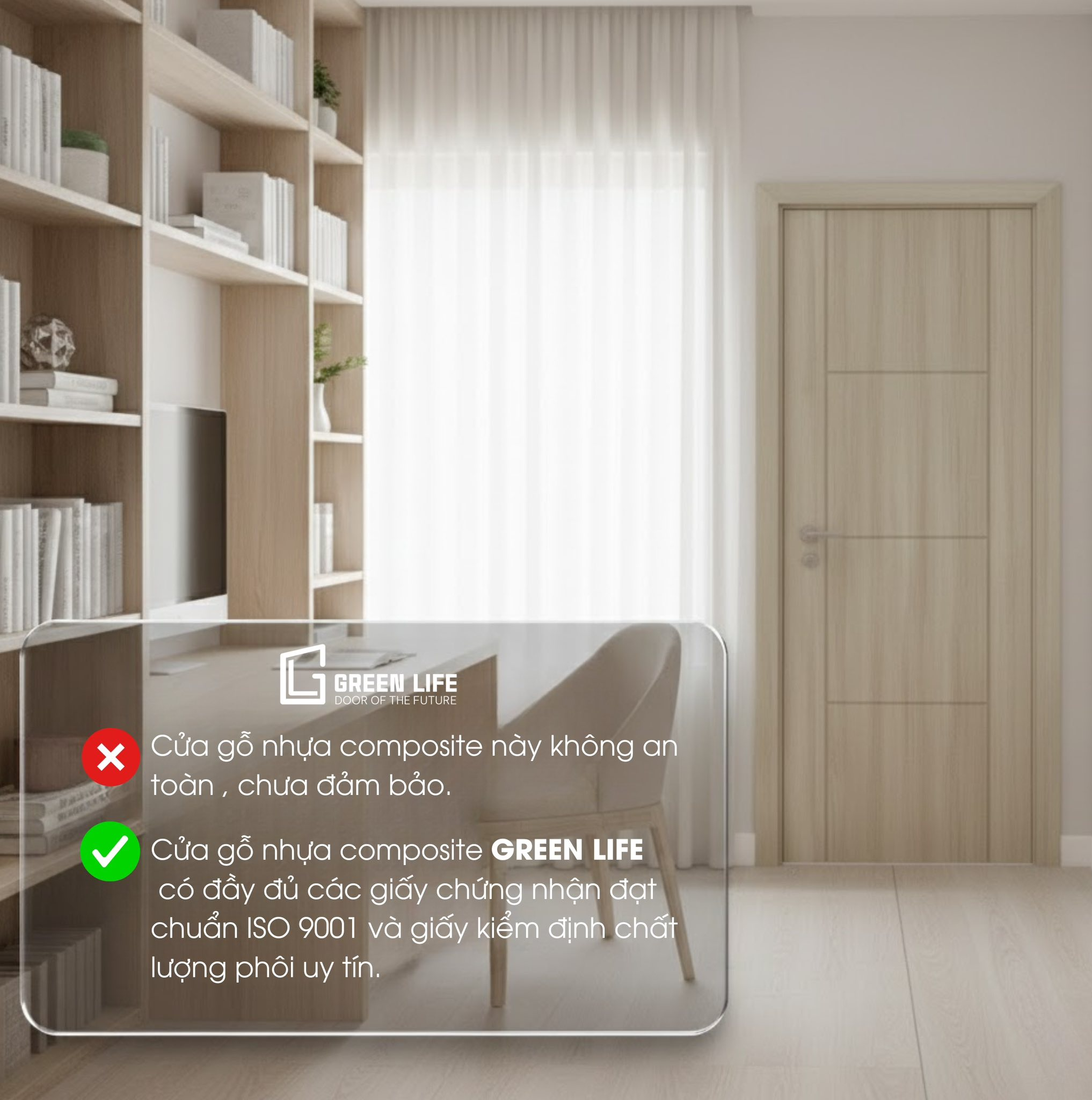 Cửa gỗ nhựa composite Green Life được sản xuất theo hệ thống quản lý chất lượng ISO 9001, đồng thời sở hữu: