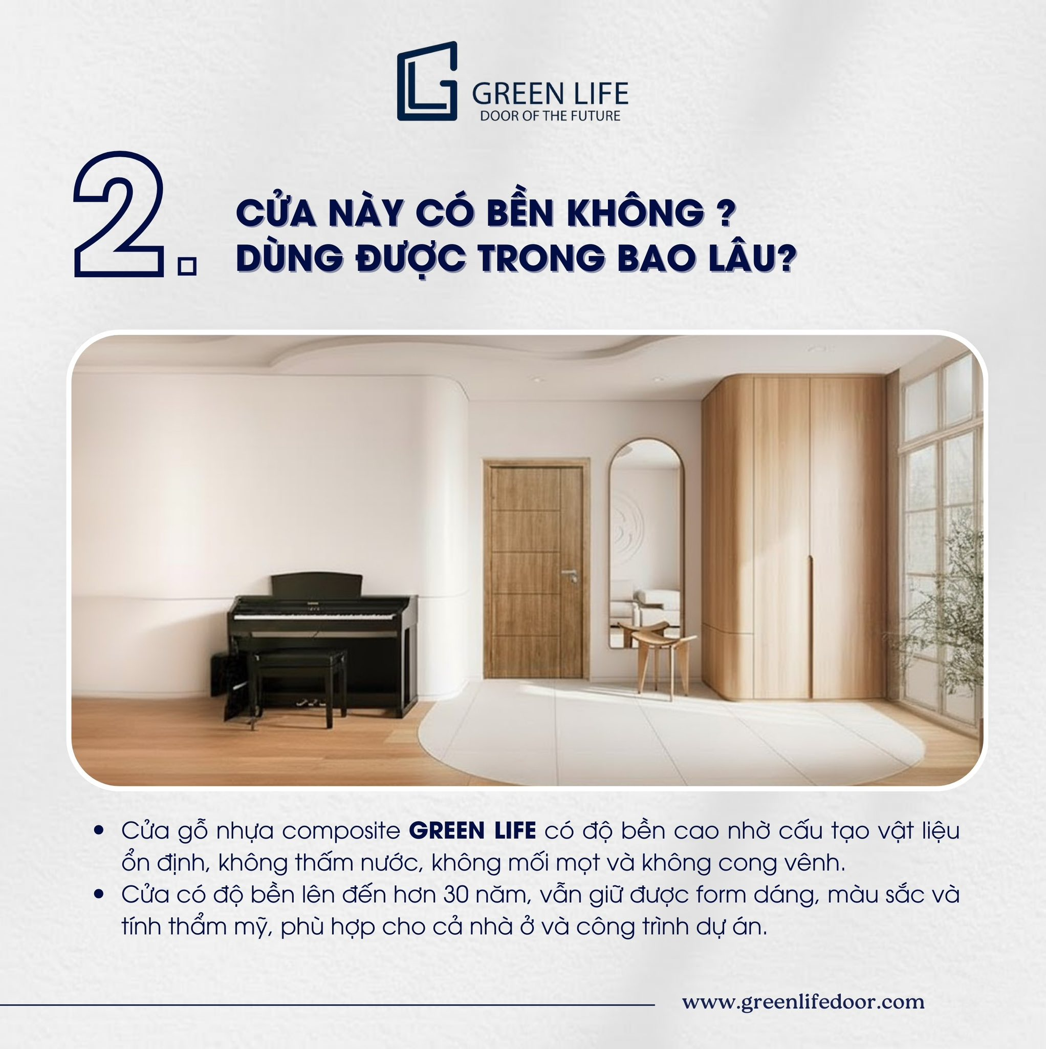 2. Cửa composite Green Life có bền không? Tuổi thọ sử dụng bao lâu?