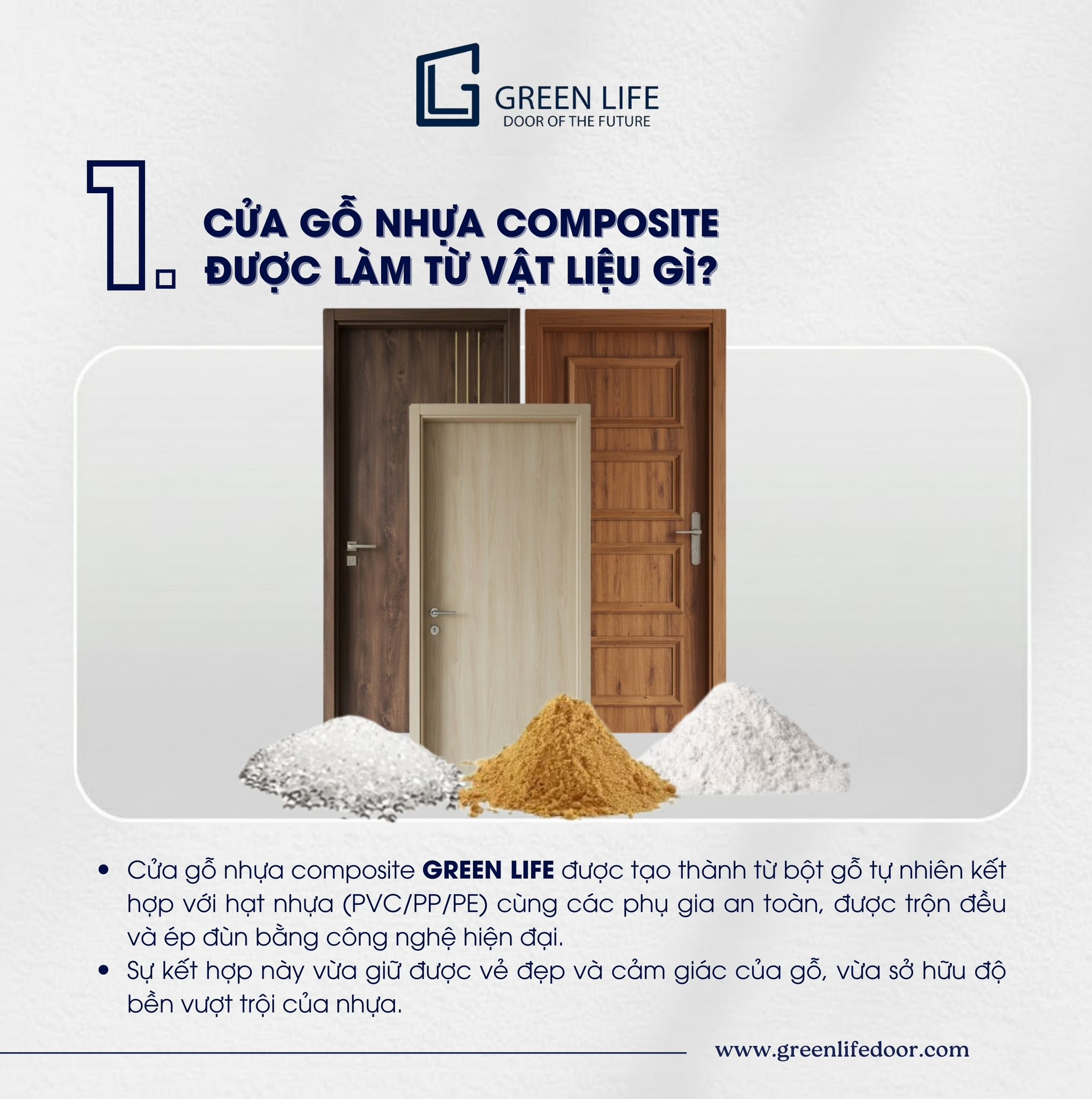 1. Cửa gỗ nhựa composite Green Life được làm từ vật liệu gì?
